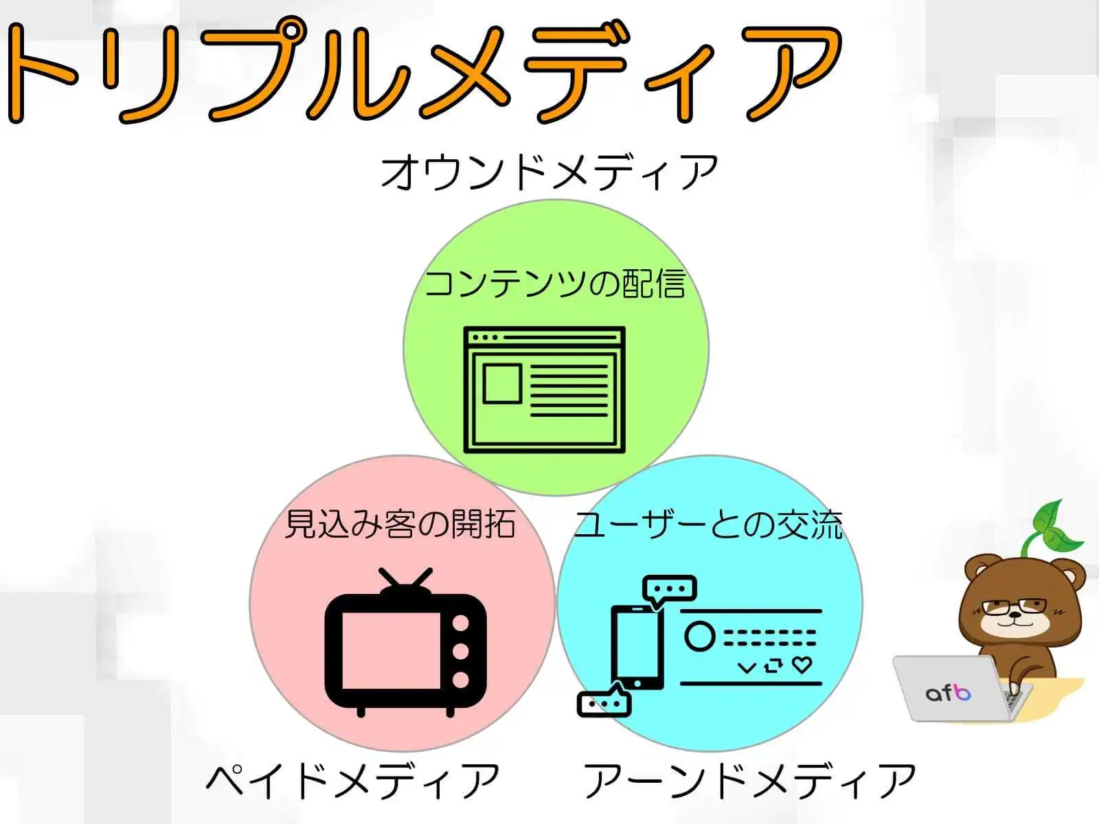 オウンドメディア以外にもペイドメディア・アーンドメディアが用いられます。