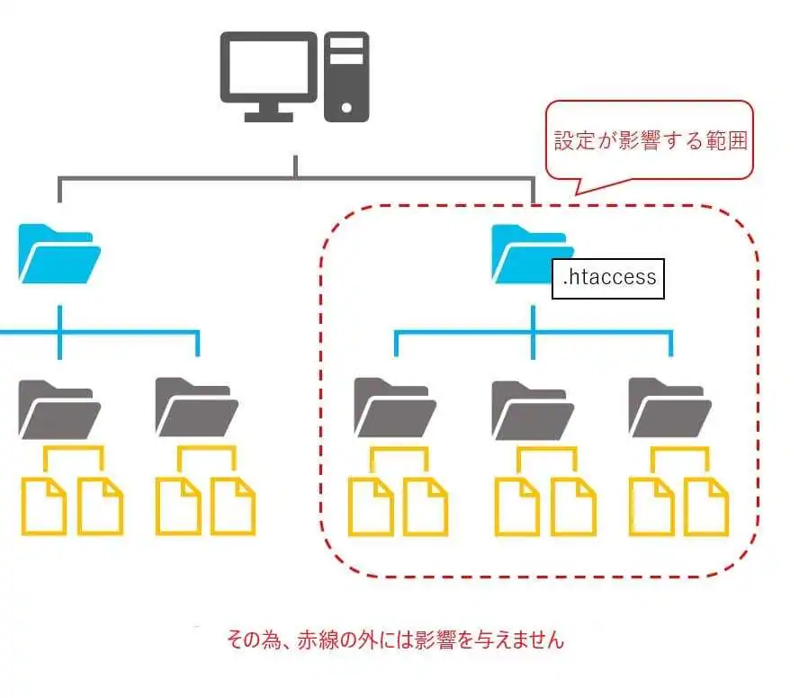 というのも、「.htaccess」というのは「同じフォルダ内とその下の階層までしか影響を与えない」からです。