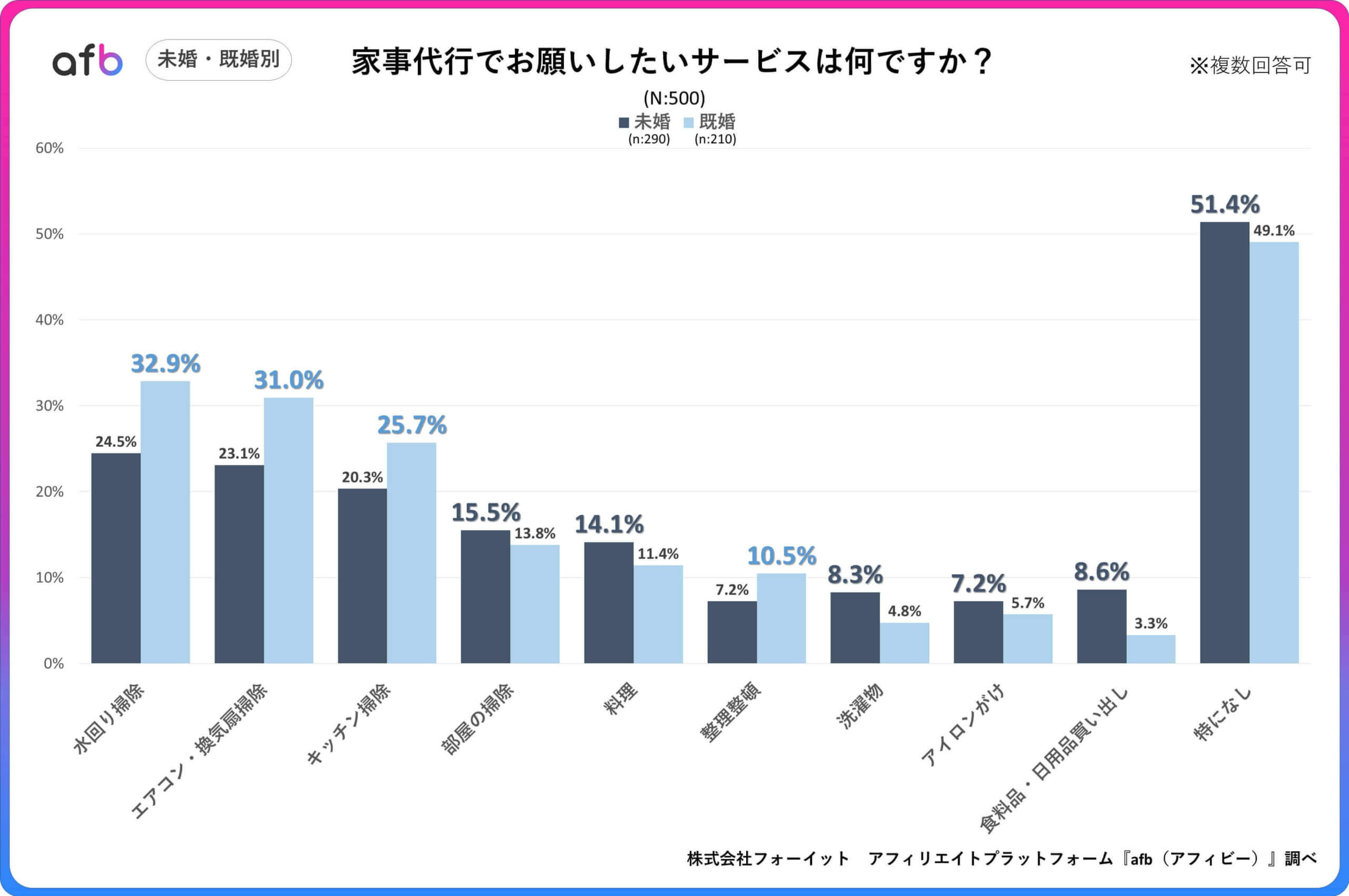 既婚者は「大掃除」系、未婚者は「食料品の買い出し」へのニーズが顕著